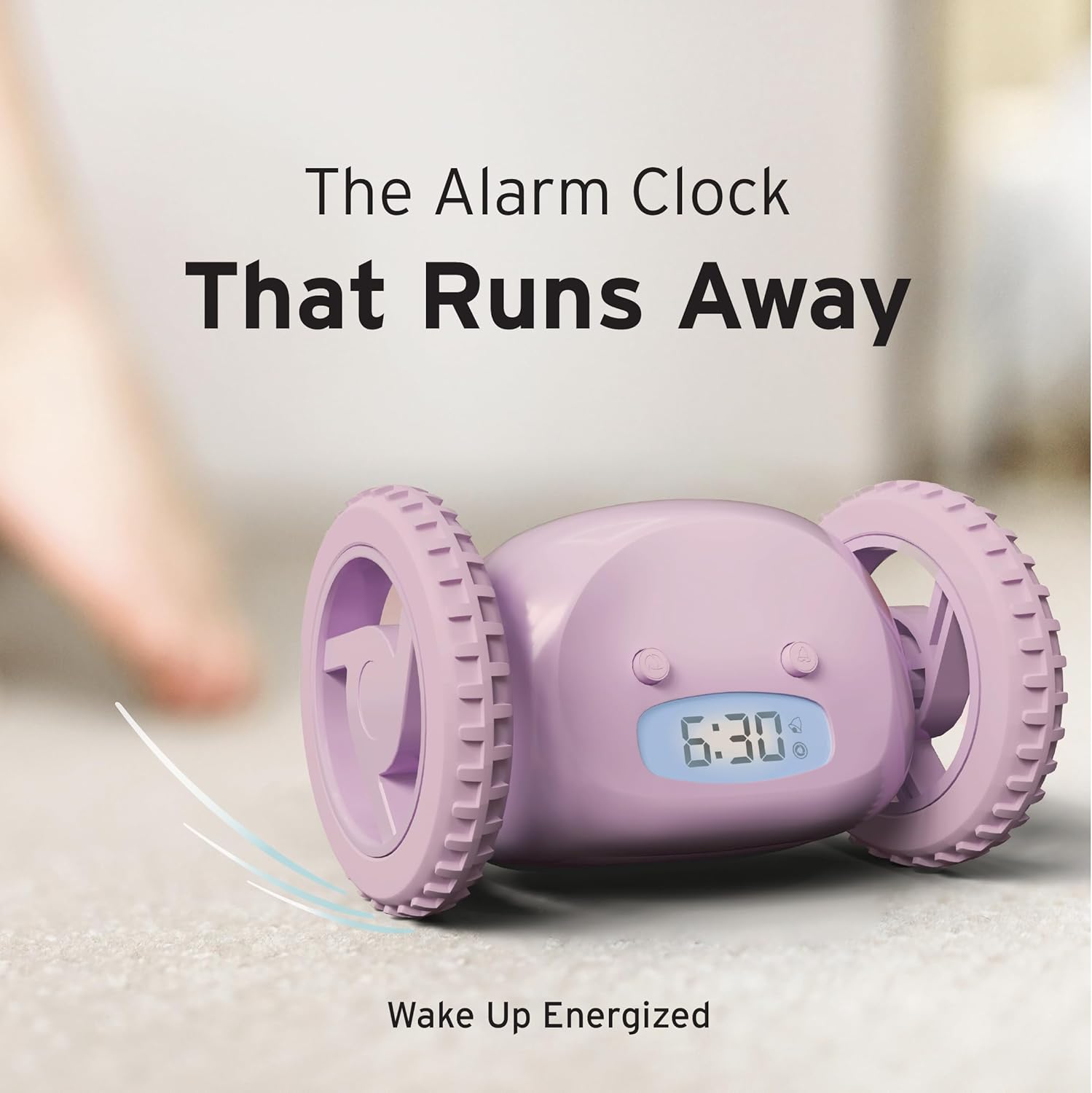 Runaway Clock On Wheels- Clocky is a super loud digital alarm clock that jumps and rolls away in your bedroom, making it the perfect heavy sleepers alarm clock. This jumping alarm clock features a very loud alarm.