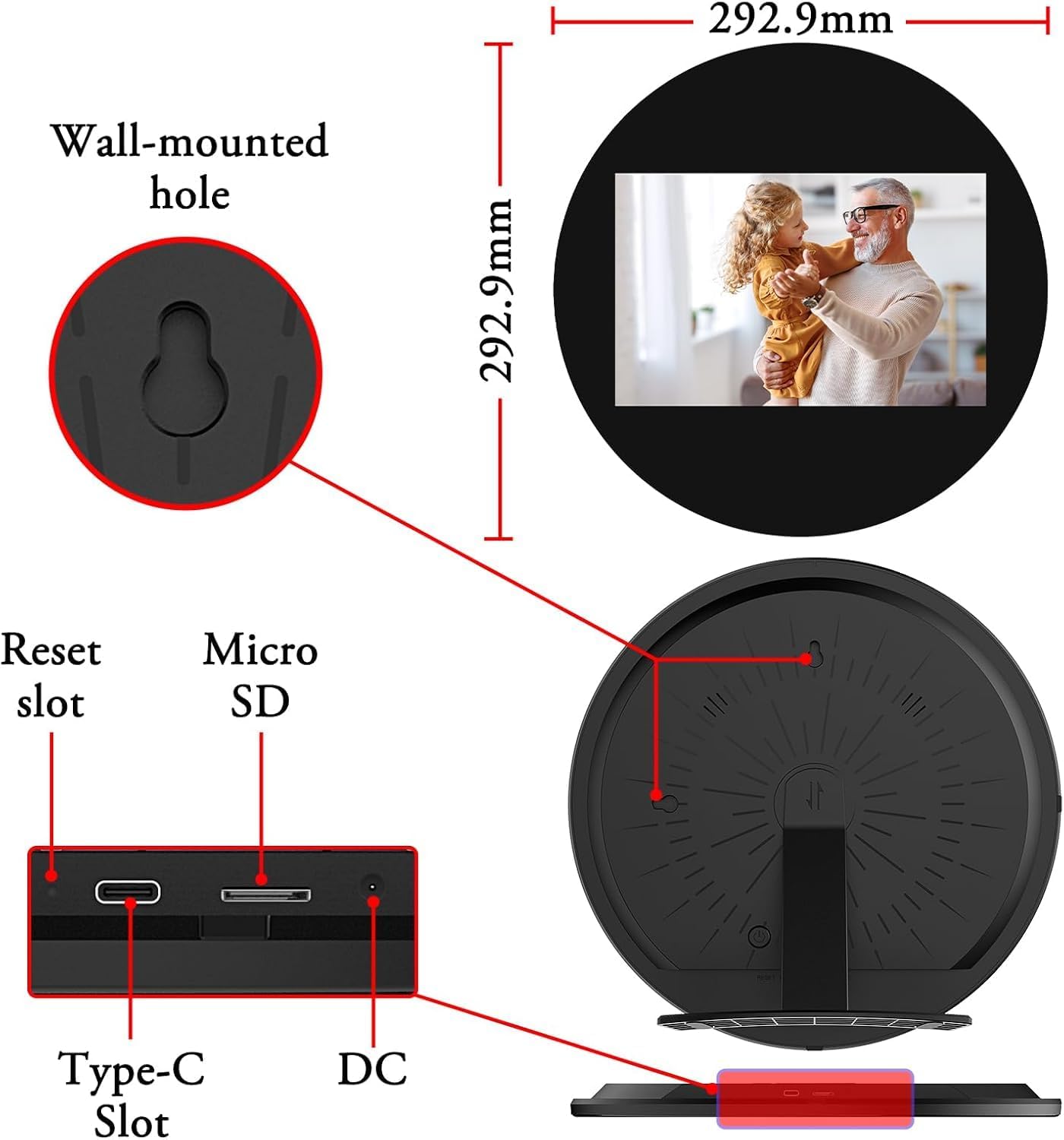 【32G Built-in Storage & expendable by micro SD card】: With 32GB of built-in memory and unlimited free cloud storage, you can store more than 88,000 photos (300KB/picture) on the WiFi picture frame. The photo frame electronic supports direct playback from micro SD cards and USB drives(max.32GB) to expand storage or batch import, export, and backup files. Supports multiple image formats including JPG/JPEG/BMP/PNG, and video format by MP4.