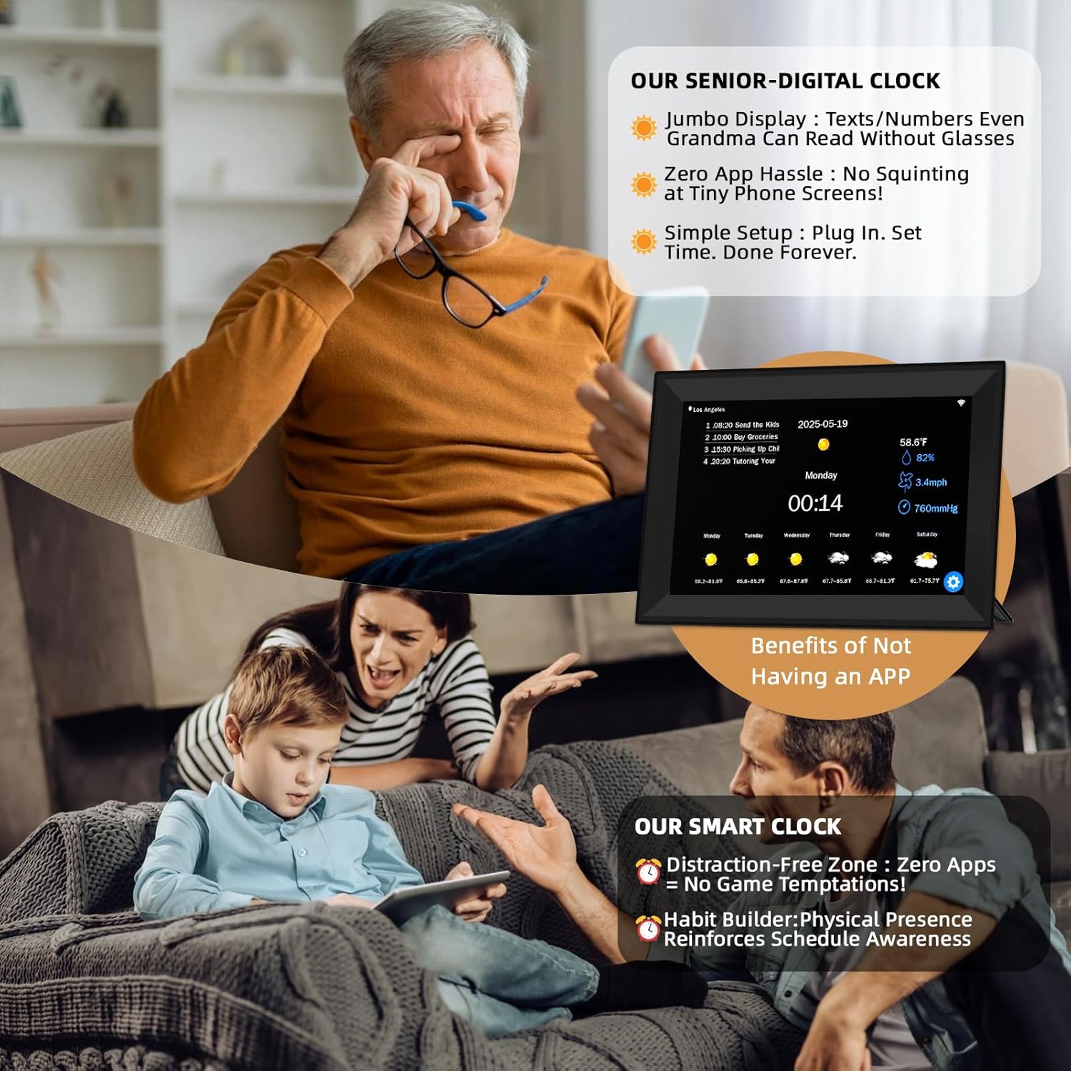 • Professionals juggling deadlines • Families coordinating schedules • Clock for Amnesia Dementia Elderly/Seniors
