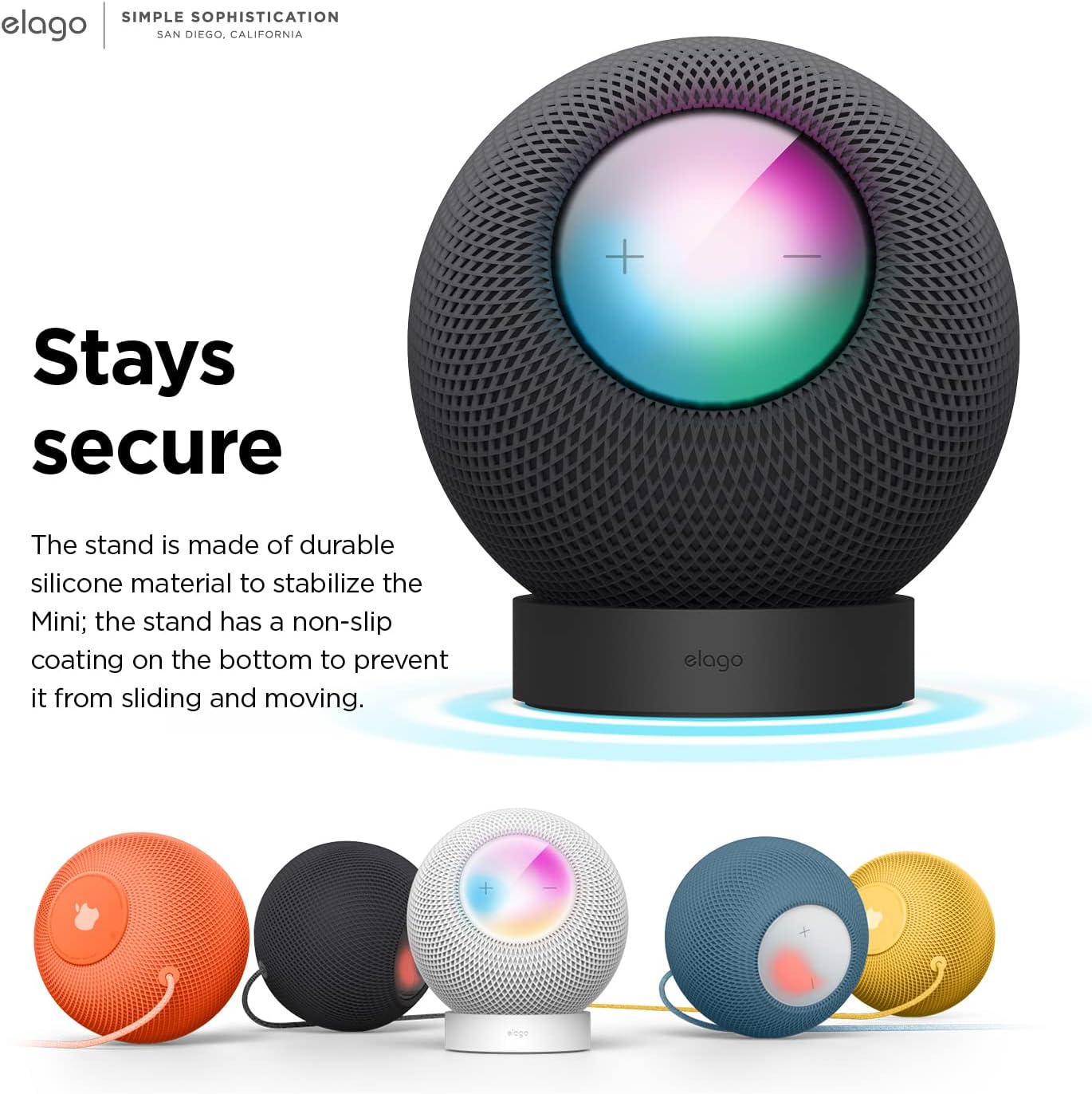 THE ORIGINAL STAND DID SO well elago made one for the Mini! Made from DURABLE SILICONE, the stand is made to last longer than the pod itself! Silicone is harmless to humans and pets, making it PERFECT FOR ANY HOUSEHOLD.