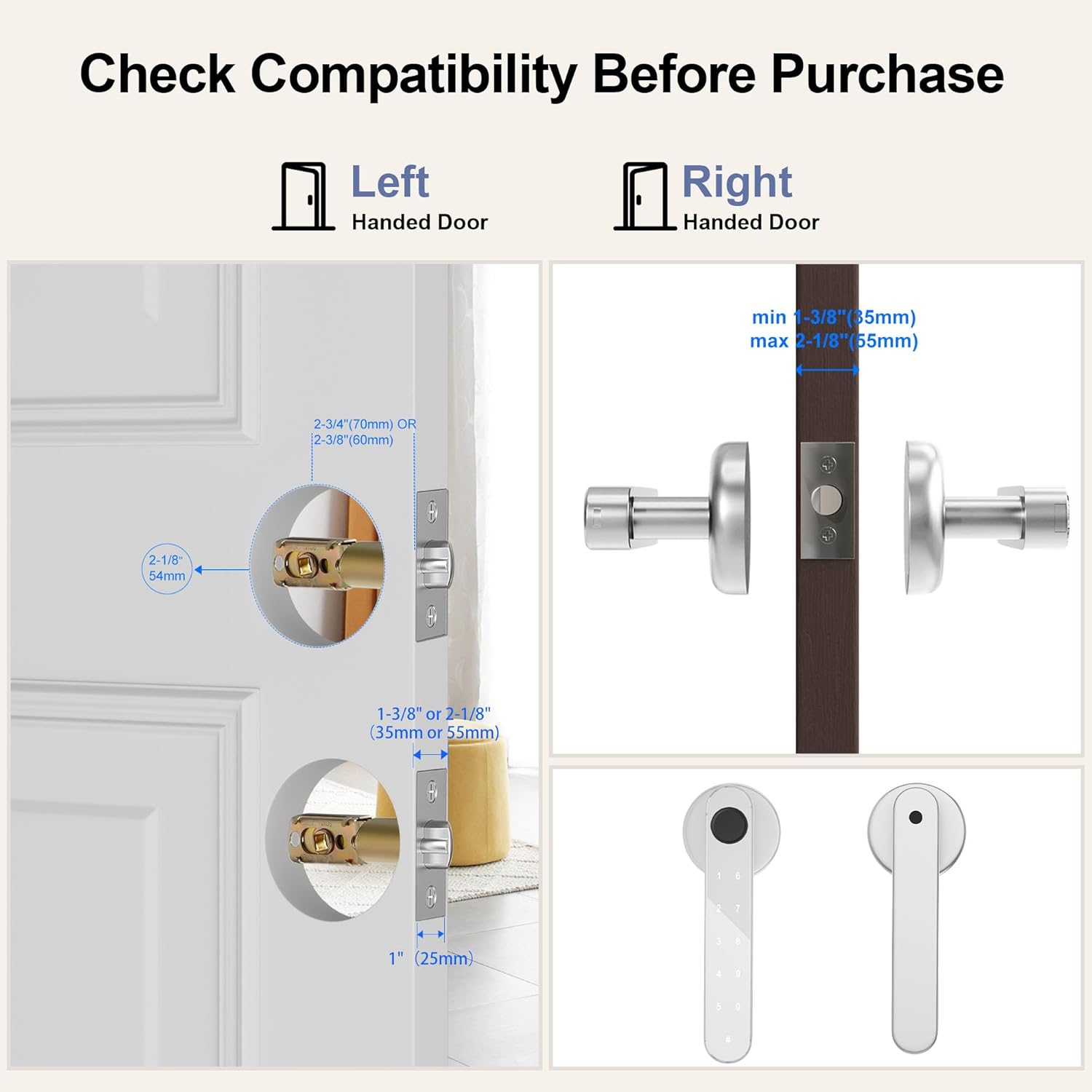 13 reviews for Fingerprint Door Lock,Smart Door Knob,Biometric Door Knob with Smart APP Keyless Entry Door Lock with Tuya for Home/Bedroom/Office/Apartment/Airbnb Siver