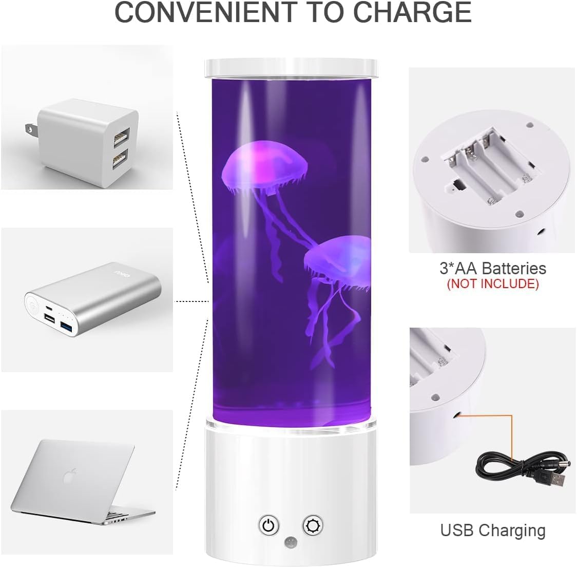 2 Ways to Charge: The jellyfish lamp is equipped with a 1.5-meter-long USB charging cable, which is convenient for charging in various scenarios. For example, use power bank or link the computer to charge