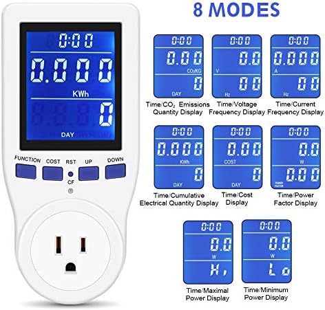 Various Parameters Measurement: CO₂ Emissions(CO₂/KG), Power(W), Energy (KWh), Voltage/, Amps/, Power Factor, Minimum power and Maximum power, 8 modes for your choice