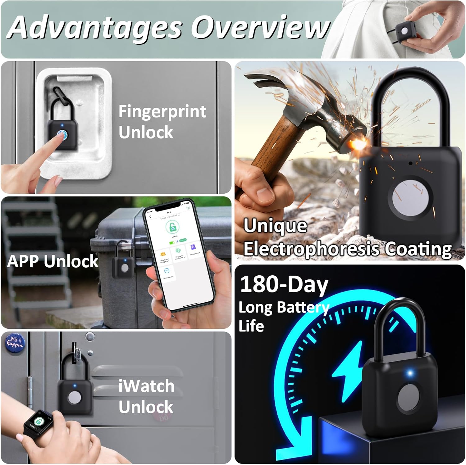 1 Fingerprint Unlock 2 APP Unlock & Control 3 Battery Reminder
