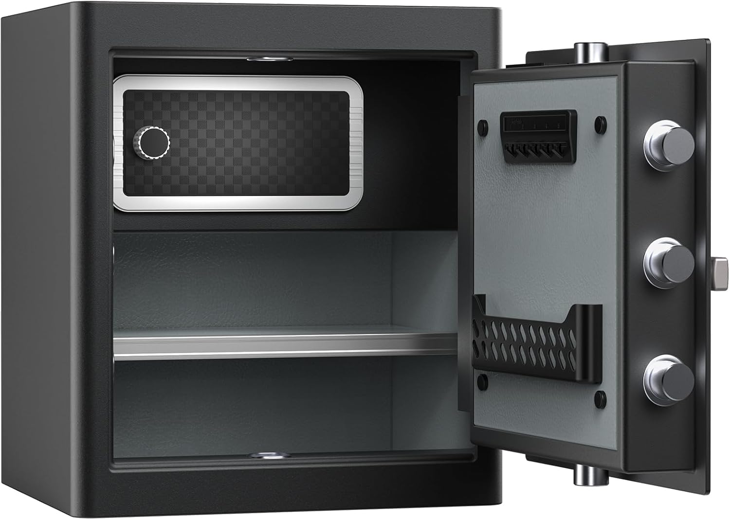 Security and Durable Design: RPNB home safe is made of anti-theft solid steel, heavier than 60 lbs, equipped with pry-resistant 5 mm thicken solid door, 3-way large solid steel live-locking bolts and anti-impact hinges for the ultimate prevention against unauthorized users and ensure that your valuables in your home or office are safe and secure. It also features a durable powder coated finishing to prevent corrosion and ensure long lasting protection for the security box