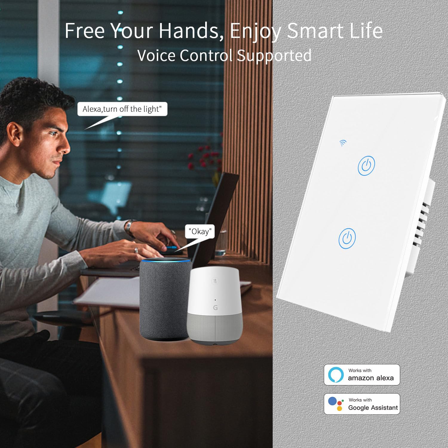 ✨ 【Sleek Glass Touch + Matter】 Tempered glass panel (IP20) with instant response. Matter-enabled for native Apple Home/Siri, Alexa & Google control — LAN privacy guaranteed.