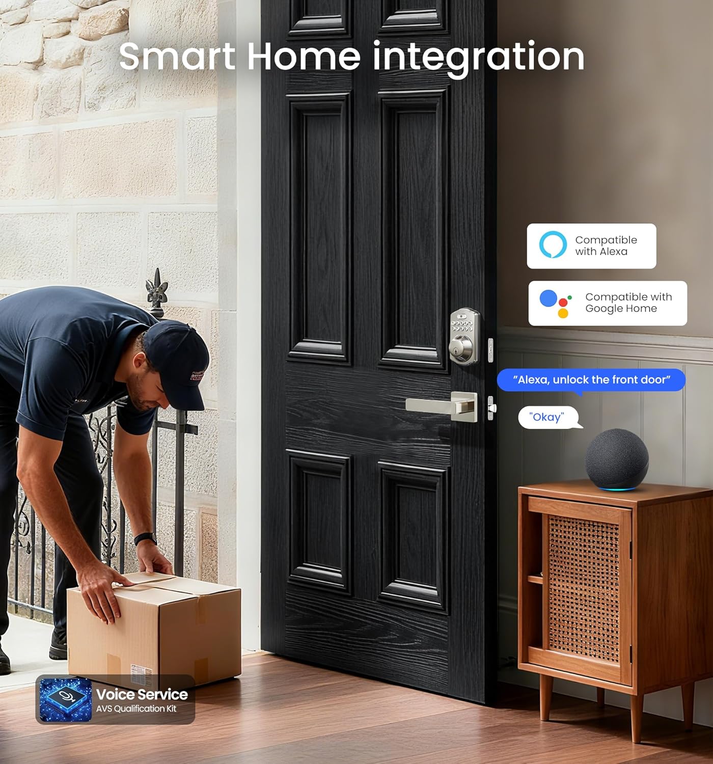 Unlock Anywhere, No Hub Needed: Built-in WiFi smart door locks for front door breaks free from Bluetooth distance limits, enabling remote programming and user management from anywhere. Works with widely used smart home ecosystems to be your smart manager